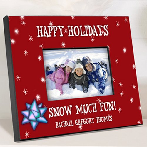 Deck the halls with you favorite family picture. Or give this picture frame as a personalized gift for the holidays. This Christmas-red frame features a holiday bow and is personalized with special holiday messages or family members names. Frame measures 8" x 10" and holds a 4" x 6" photo. Personalize up to three lines with up to 20 characters per line.